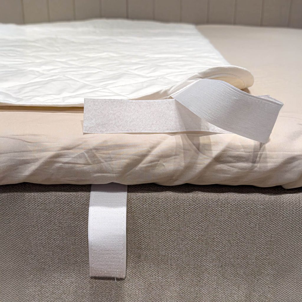 To prevent the mattress topper from sliding around the bed, even with children using it as a bouncy castle, our cover comes standard with anti-slip knobs that keep the mattress topper securely in place.
