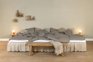 So now you have a comfortable and safe sleeping surface, but the assembled beds can look somewhat messy – this is where the FamBed bed skirt comes in, to make the assembled beds look like one seamless piece of furniture, presentable and less cluttered.